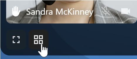 The promoted view shows the speaker large and others in a row below. If the people do not fit on the screen, buttons will appear on the left and right that let you navigate.