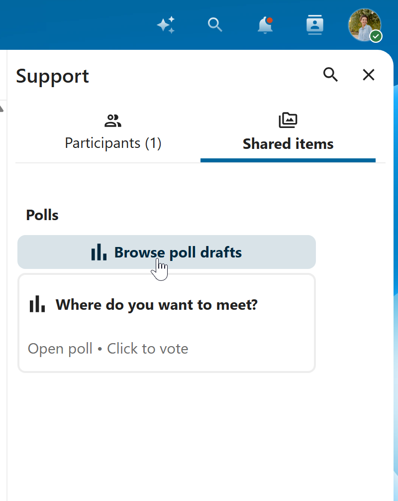 You can find poll drafts in Shared items tab or next to the poll title input field.